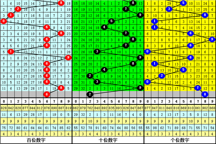 (2)在号码频次方面,开出个数最少的三个号码为:3、2、4,一般来说这三个号码不会同期出现;开出个数最多的四个号码别离为:6、0、8、9,本期看好这四个号码中包含1-2个开奖号码,胆码参考9。8。